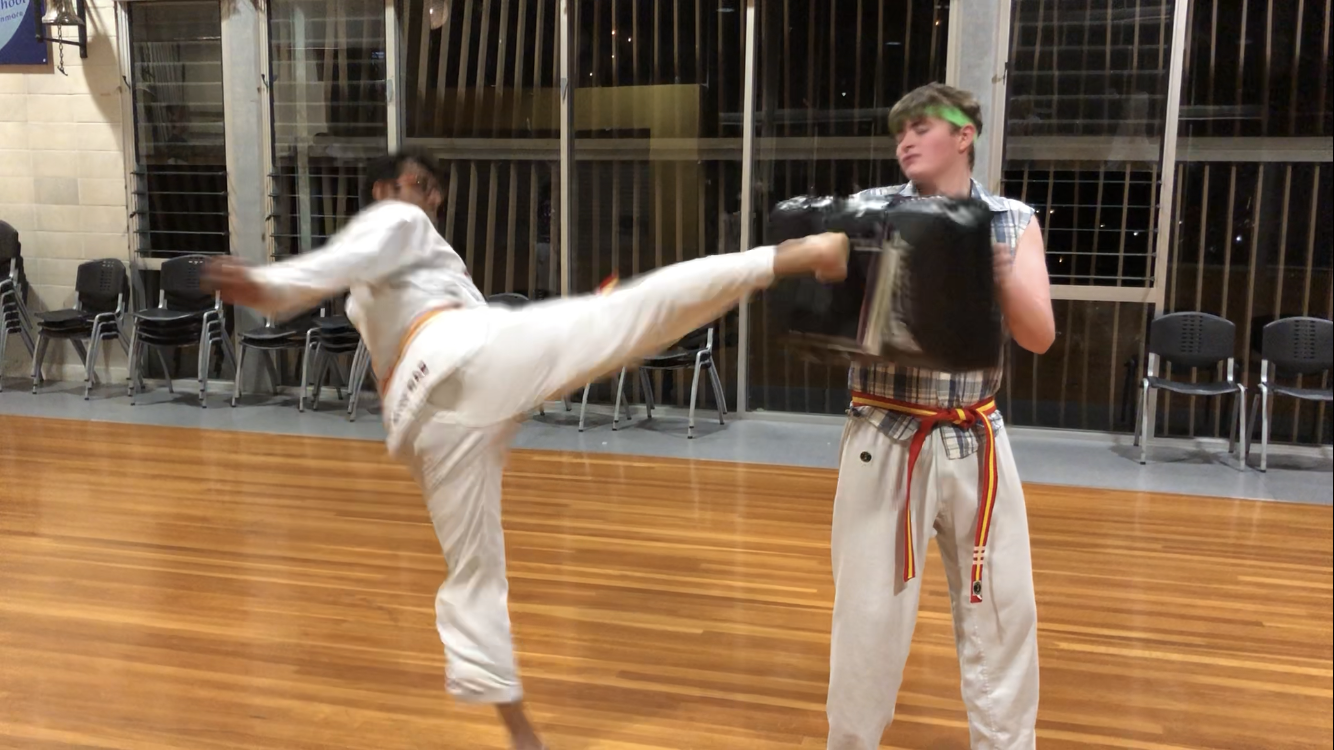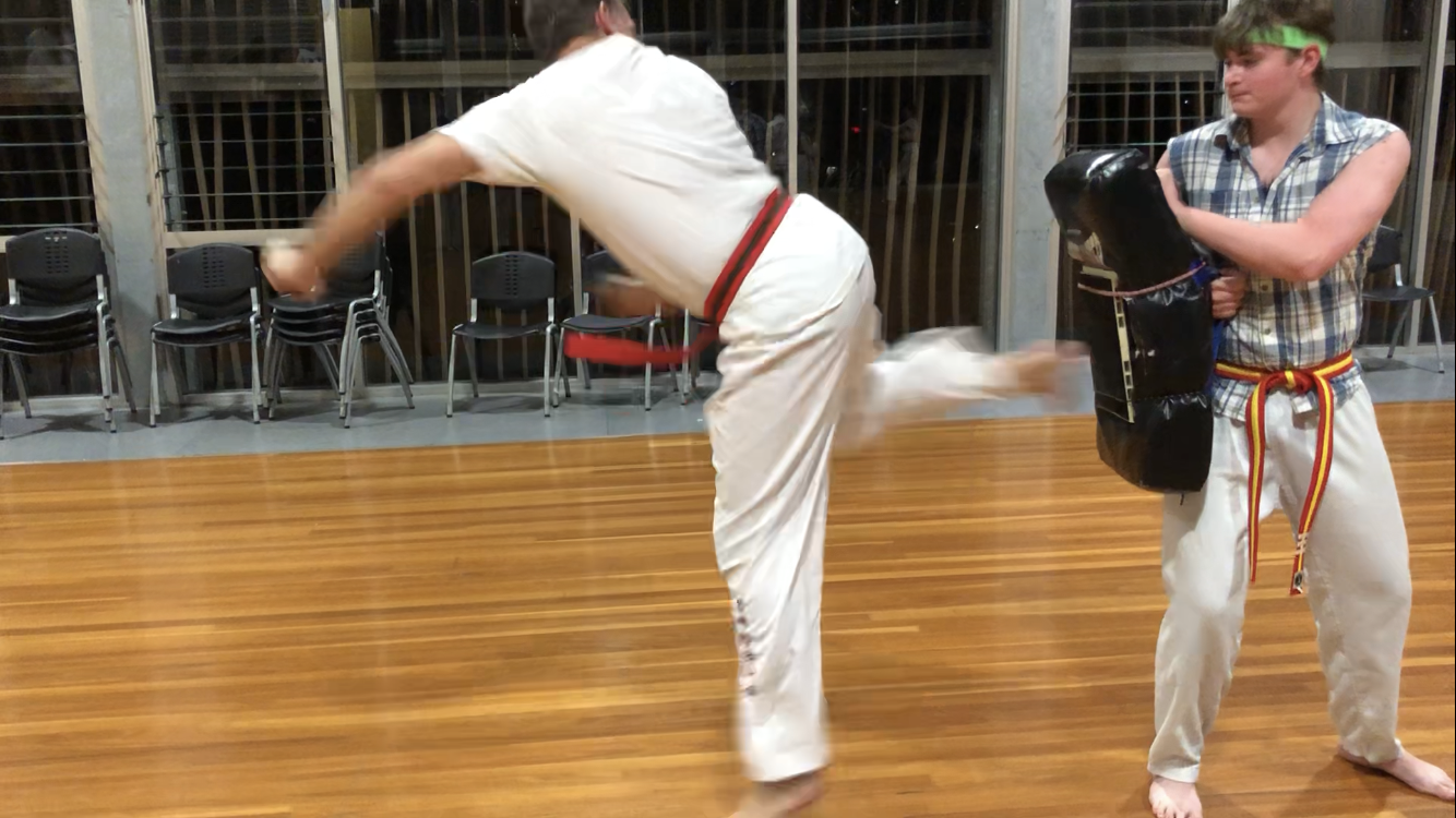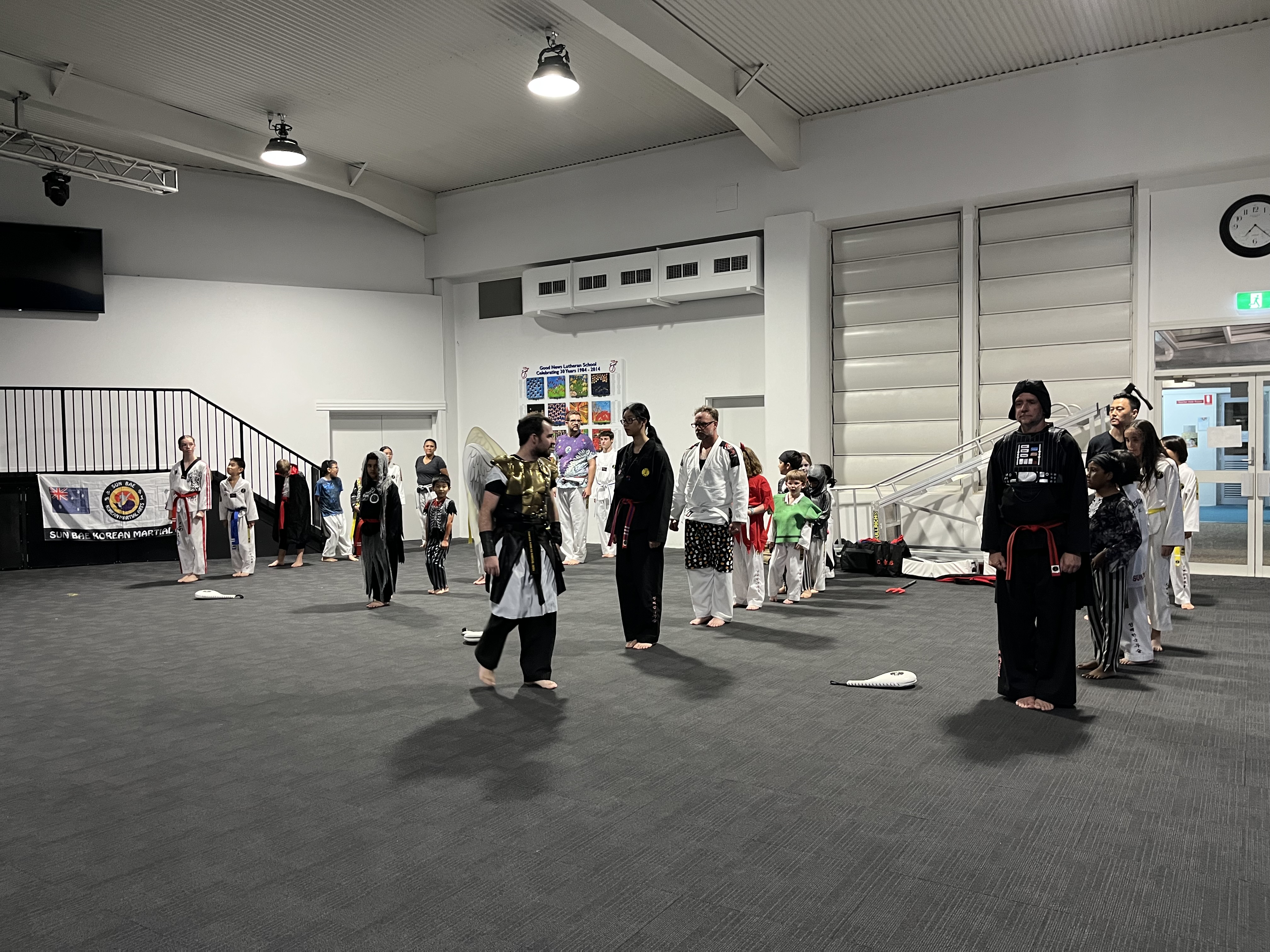 One very impressive moment is when Zordan (Red 2) did a spin heel board break in a fully masked costume. Other students also performed their first ever board break.