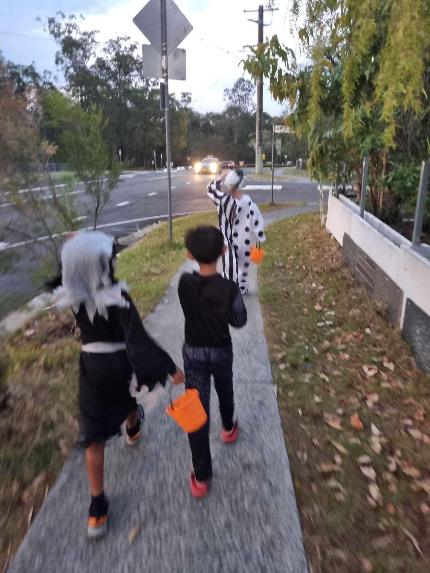 All the kids dressed up as superheroes and villains to go out trick or treating, chaperoned by Master Mark. They brought back many buckets of goodies to be shared and filled their bellies.