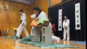The tile breaking did not disappoint, in fact it never does, showing all the true skill and courage of a martial artist. The tiles used are all terracotta roofing tiles. Only black belts are permitted to enter — due to the inherent danger of breaking.