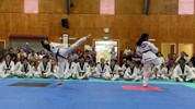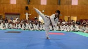 "We do not often see such a skilful side kick at blue belt level. Any black belt would be proud to finish their kick like this. Footshape, body turn, hand positions, eye direction, shoulder position, all technically correct ensuring a straight-line kick with lots of power and balance..."