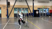 Of particular note, Andrew Shoebridge was successful in his black belt test. His performance was very controlled, showing great discipline for his level. You will also see some excellent cutting in the video below — accurately striking the mats always with the tip of his blade. We welcome him to the Kumdo black belt family and look forward to seeing more.