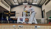 On Saturday the 25th, Roman Castiglione performed a demonstration for his Black Belt grading test at the Brisbane Black Belt Grading. This test was conducted by Master Bradley Tatnell. Despite the heat and a lot of nerves, Roman did well and has been approved to move forward to the next stage. He will now train very hard to perform the full grading test in July. Good Luck Roman!