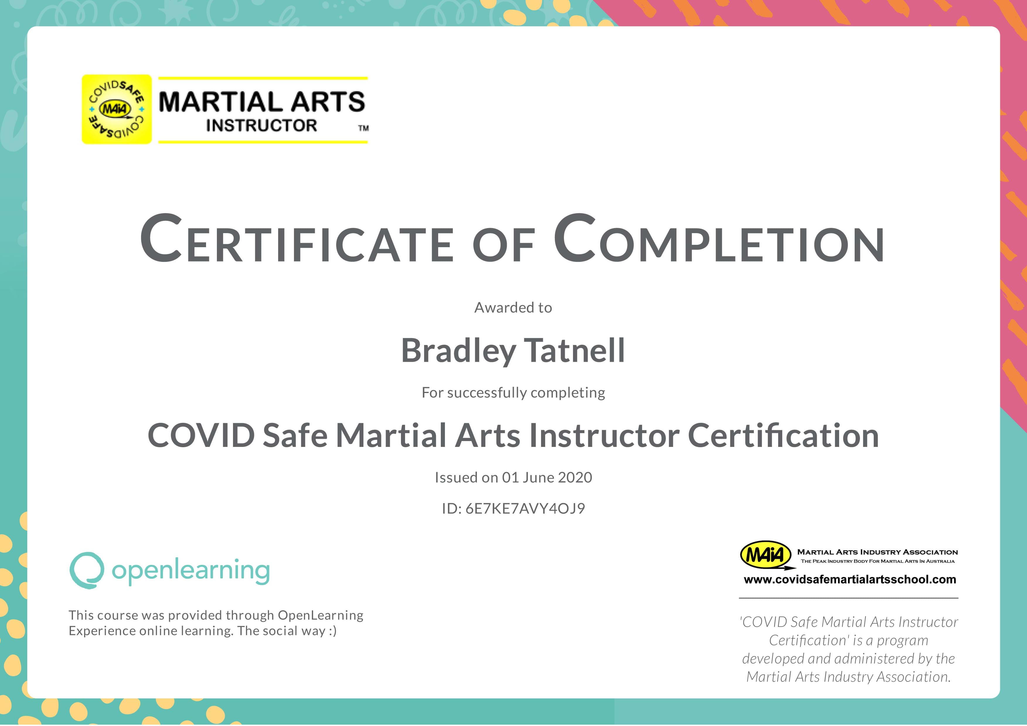 COVID Safe: your instructors have all completed the COVID Safe Martial Arts Certification.